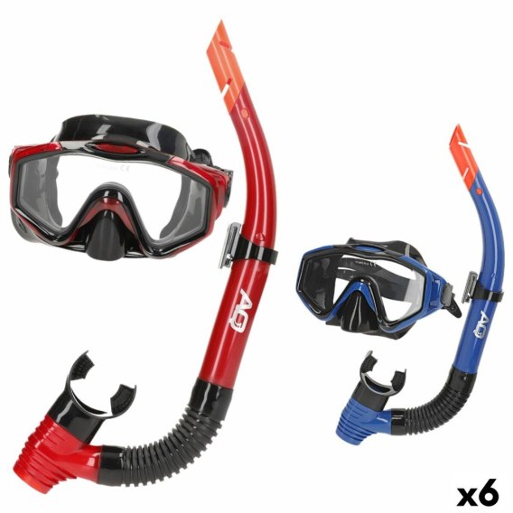 Gogle do nurkowania z rurką AquaSport Niebieski Czerwony (6 Sztuk)