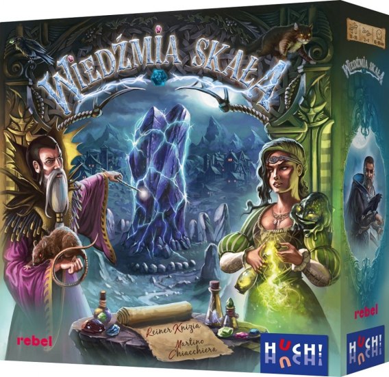 Wiedźmia Skała to gra planszowa, w której wcielacie się w uczonych mistrzów gildii zebranych wokół pradawnego świętego kamienia. Każda osoba zajmuje 1 z 4 wież i stamtąd rozpoczyna grę. Szykujcie w swoich kociołkach zaklęcia i stwórzcie wokół Wiedźmiej Skały sieć magicznej energii. Rozsyłajcie swoje wiedźmy, wyławiajcie z kociołków magiczne kryształy i zróbcie dobry użytek z pentagramu i czarodziejskich różdżek. Nie zapominajcie jednak o przepowiedniach, jeśli chcecie zapewnić sobie zwycięstwo! Nie wszystkie możliwości są zawsze dostępne, więc trzeba mądrze wykorzystywać okazje, które się nadarzają. Po 11 rundach to z Was, które zgromadzi najwięcej punktów zwycięstwa, wygra rozgrywkę i zostanie Wybrańcem Wiedźmiej Skały.