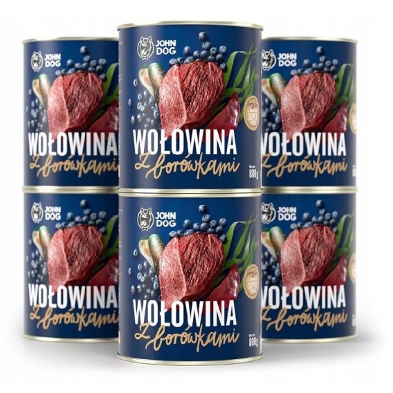 • JOHN DOG Berry Adult Wołowina z borówkami - mokra karma dla psa - 6 x 800 g