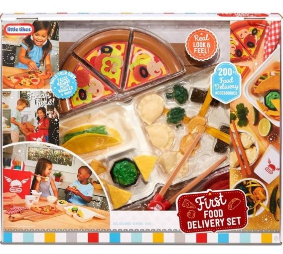 Zestaw Little Tikes First Food Delivery zapewni dzieciom zajęcie na wiele godzin na zabawie w przygotowywanie, serwowanie czy dostarczanie pyszności z różnych stron świata. Maluchy poznają najpopularniejsze potrawy kuchni włoskiej, meksykańskiej i azjatyckiej. Będą świętować Taco Tuesday z tortillą, różnymi filcowymi dodatkami i guacamole. Skomponują też najlepszą włoską pizzę oraz potrenują jedzenie makaronu czy pierożków przy użyciu pałeczek! Mnóstwo kulinarnej zabawy i poznawanie kulinarnych przysmaków z różnych stron świata! Dzieciaki mogą wcielić się również w rolę dostawcy restauracyjnych posiłków i klienta odbierającego zamówienie. Zestaw zawiera ponad 200 realistycznych akcesoriów takich jak pizza i dodatki do jej komponowania, makaron, warzywa, pierożki, kubek guacamole, chipsy czy tortilla. Dodatkowo w zestawie znajdują się naczynia do serwowania, pałeczki i pudełka do pakowania tych pyszności na wynos. Czas na smakowitą zabawę!