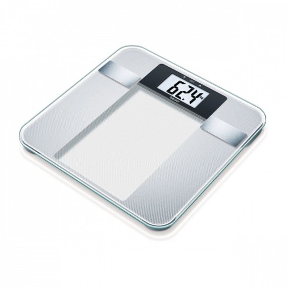 Waga diagnostyczna firmy Beurer ułatwia zarządzanie zdrowiem: BG 13 z dużym wyświetlaczem LCD mierzy masę ciała, zawartość tkanki tłuszczowej, wodę w organizmie i zawartość tkanki mięśniowej, a nawet oblicza wskaźnik BMI.